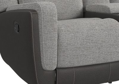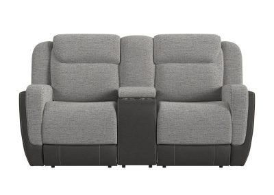 Experience unmatched comfort and convenience with the Hornet Rancho Grey Motion Loveseat. Designed with two-tone fabric upholstery, it offers a stylish, contemporary look that complements any living space. The manual reclining mechanism allows for easy adjustment to your perfect lounging position, while steel springs and foam cushions provide long-lasting support. Sink into plush, cushioned seats, backrests, and armrests, ensuring maximum comfort for extended seating. The wide, sturdy armrests add extra support, creating a truly relaxed sitting experience. Plus, the center console features built-in cup holders and storage, making it the ideal spot for unwinding with all your essentials close at hand.