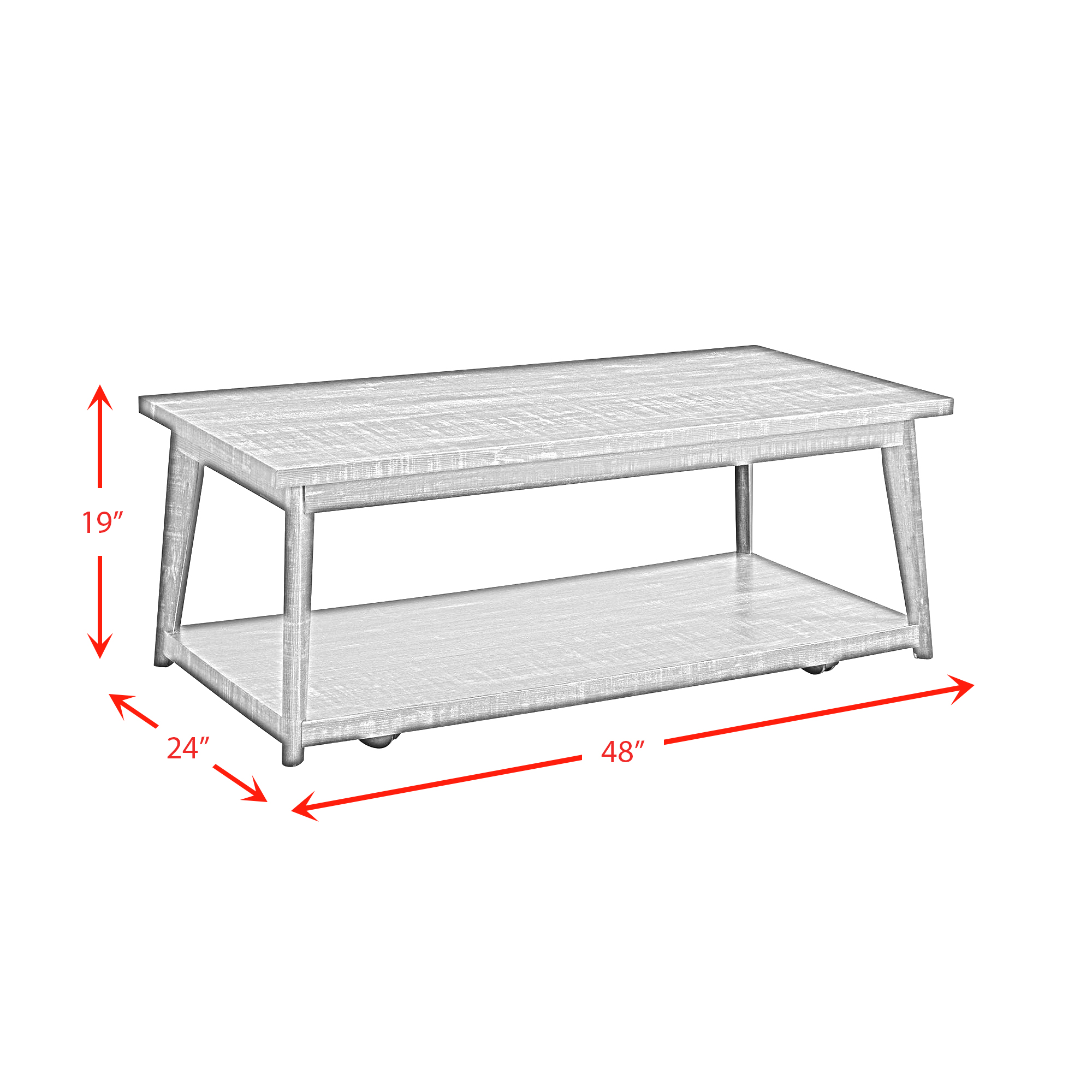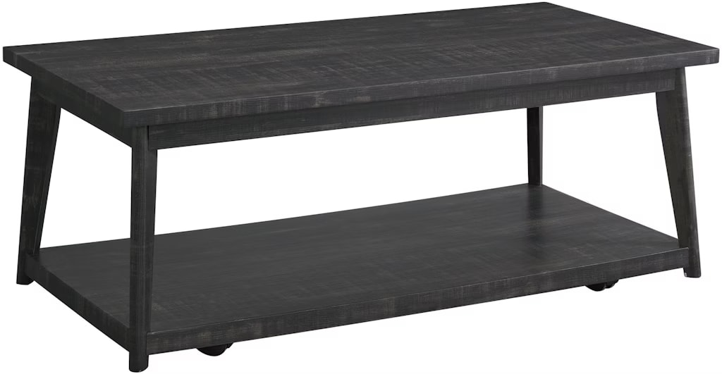 The Libby showcases sleek profiling and mid- century tapered legs. This set includes one coffee table and two end tables. Crafted of rubberwood and manufactured woods. The open shelf design on the coffee table is perfect for your favorite decor pieces, magazines, remotes, blankets, and so on. This table set fits well into contemporary or rustic home styles.