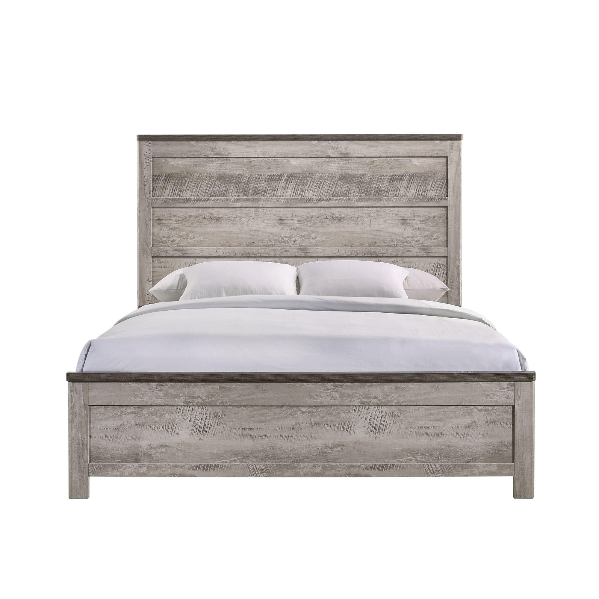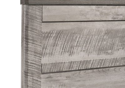 The Millers Cove King Panel Bed is going to look great in your bedroom! This bed features a panel inset not only in the headboard, but also in the footboard; instantly adding extra flair to this already stylish piece. This bed has a 3D paper finish, giving a cool update to a traditional bedroom staple. The top of the headboard and footboard are finished in a dark gray, and contrast beautifully with the light gray color on the rest of the piece. The legs of the footboard are block, matching back to the other pieces in the collection. Add this panel bed to your home today for a look you’ll love coming home to, day after day!
