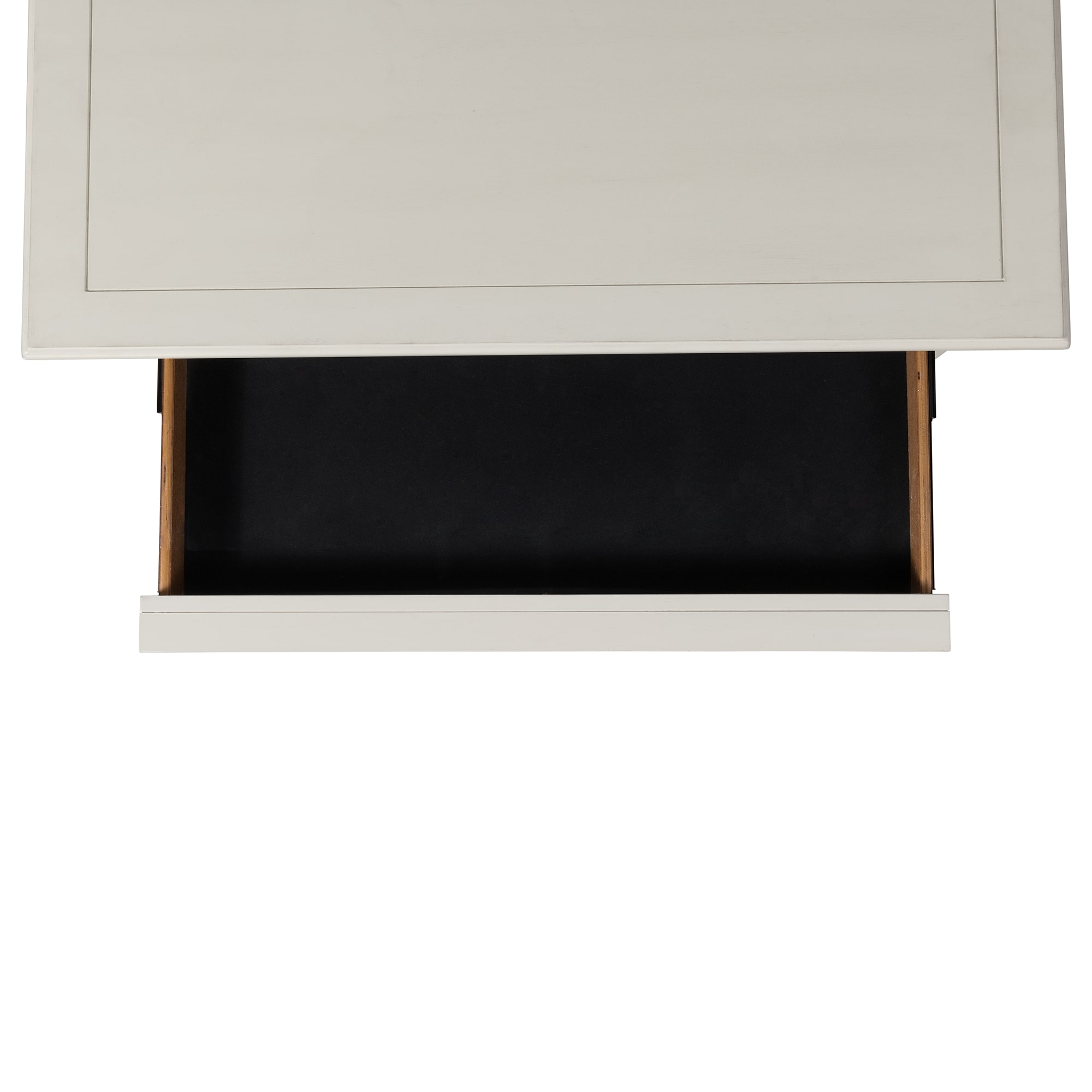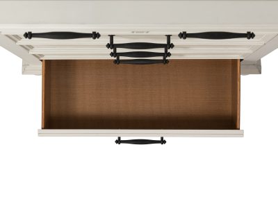 The Slater 6-Drawer Chest is going to look amazing in your bedroom! This vertical chest offers six spacious drawers for storage; while the top drawer features black, felt lining for you to easily store away your more delicate belongings. The dark metal drawer hardware pairs beautifully with the off-white finish, making it a gorgeous combo that will never go out of style. Bevel edges and bun feet complete the look of this transitional style chest. Add this piece to your home today for a look that you’ll enjoy day after day!
