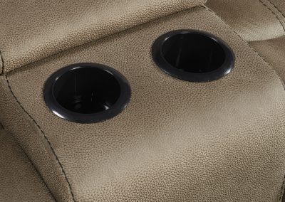 Introducing the Sorrento Motion Loveseat with Console in Brown. This luxurious loveseat is not only stylish and comfortable, but it also offers a range of convenient features. The center console provides a perfect spot to store snacks, remote controls, and other essentials, while the lift-up storage compartment is ideal for keeping blankets and pillows close at hand. With built-in cup holders, you can enjoy your favorite beverages without worrying about spills. Plus, the USB outlets allow you to conveniently charge your devices while relaxing. The contrast welt adds a touch of elegance to the overall design, making this loveseat a statement piece in any living room or entertainment area. Upgrade your space with the Sorrento Motion Loveseat with Console in Brown today!
