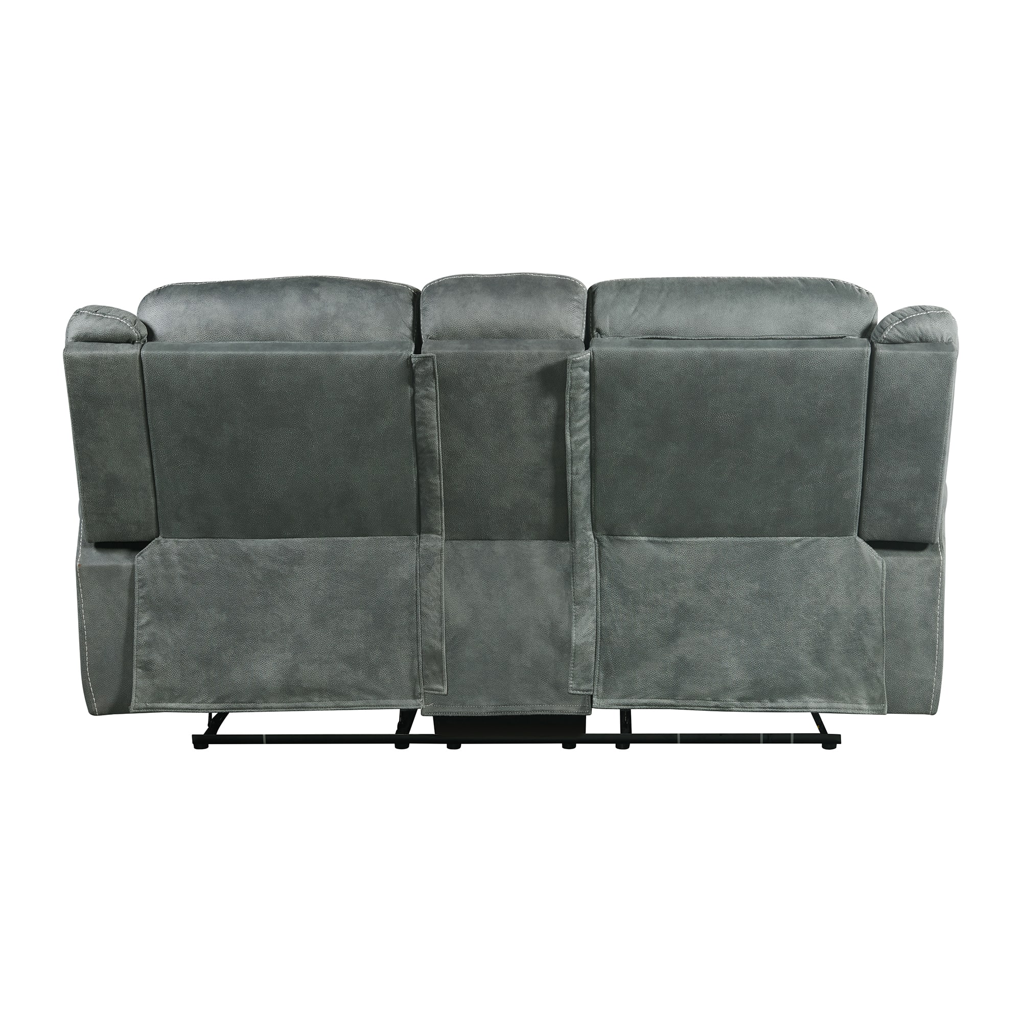 Introducing the Sorrento Motion Loveseat with Console in Charcoal. This luxurious loveseat is not only stylish and comfortable, but it also offers a range of convenient features. The center console provides a perfect spot to store snacks, remote controls, and other essentials, while the lift-up storage compartment is ideal for keeping blankets and pillows close at hand. With built-in cup holders, you can enjoy your favorite beverages without worrying about spills. Plus, the USB outlets allow you to conveniently charge your devices while relaxing. The contrast welt adds a touch of elegance to the overall design, making this loveseat a statement piece in any living room or entertainment area. Upgrade your space with the Sorrento Motion Loveseat with Console in Charcoal today!